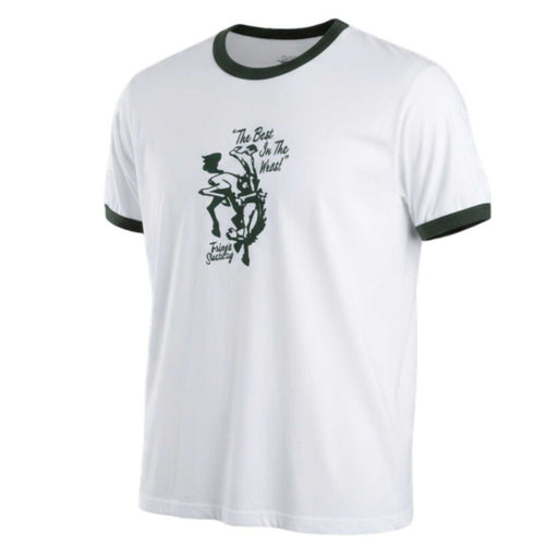 Style # 2PBSRR1007 This tee features a White/Forest Green color combination with a contrasting collar and cuffs, along with a "Best in the West" gr...
