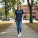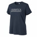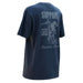 This tee features an indigo hue and short sleeves, with the front displaying "Teskey's Saddlery" and the back showing "Support Your Local Saddle Shop." Made with 100% cotton for ultimate comfort.