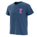This tee features a blue color, short sleeves, and a small Teskey's graphic on the front with a large "More Saddles Than Sense" graphic on the back. It's made of 100% cotton for ultimate comfort.