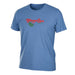 This short-sleeve Teskey's Chica Tee in blue features a stylish front graphic and is crafted from a comfortable blend of 50% polyester, 25% cotton, and 25% rayon, offering both softness and durability.