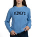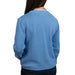 This pullover sweater in Hydrangea/Navy features long sleeves, a ribbed collar, and rolled cuffs and hem for a comfortable fit. It displays Teskey's distinctive block lettering and is made from a soft blend of 50% cotton and 50% polyester.