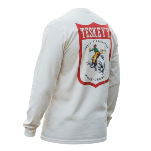 Teskey'sStyle # 2PBK7OTR Embrace the classic and timeless look of Teskey's Outfitter and Cowboy Supply Co Tee with its ivory color, short sleeves, and back...
