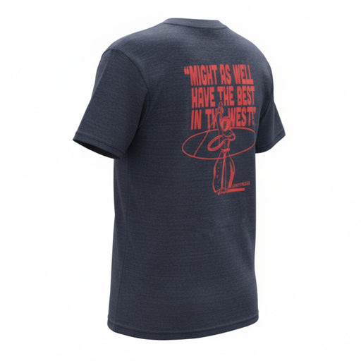 Teskey'sStyle # 2P8PNMTBT2 Introducing the Might As Well Have The Best In The West Tee in Navy - featuring a bold front logo and a large back graphic from ...