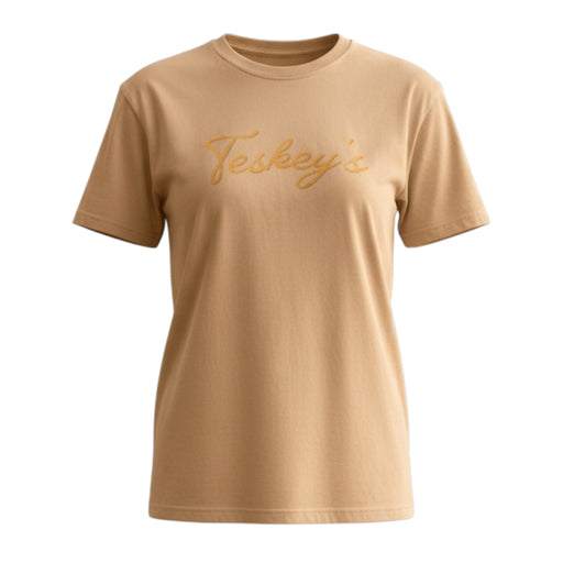 Teskey'sStyle # 2PBK7OTR Embrace the classic and timeless look of Teskey's Outfitter and Cowboy Supply Co Tee with its cider color, short sleeves, and back...