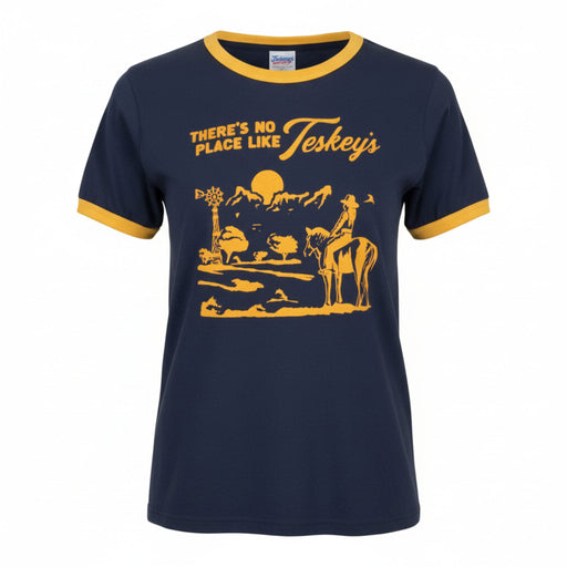 View full detailsThere's No Place Like Teskey's Navy Tee - Navy/Gold Ringer