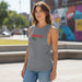 This sleeveless Teskey's Chica Tank Top in Aluminum Grey features a bold front graphic and is crafted from a comfortable blend of 50% polyester, 25% cotton, and 25% modal, offering both style and softness.