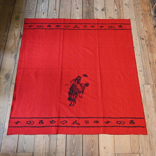 Vintage Wool Bucking Horse Red Blanket w/ Brands Nice condition
