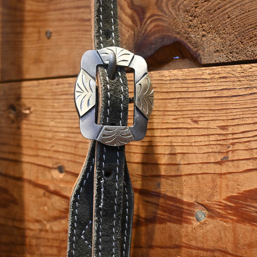 Teskey'sThis army green roughout 3/4" Split ear headstall with a gunslinger stitch and silver design buckle. Style: Split Ear Buckle: 3/4" silver design R...