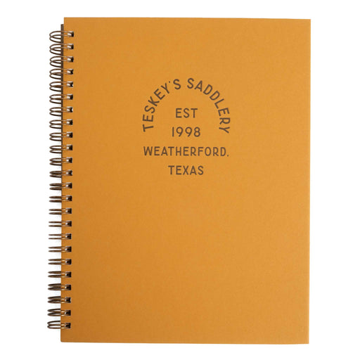 Teskey'sStyle # JCC010-SF Color: Saffron 6.5”x8.5″ 70 Lined Interior Pages Uncoated Vellum 70# Text Off-White Interior Paper Bronze Wire-O Binding