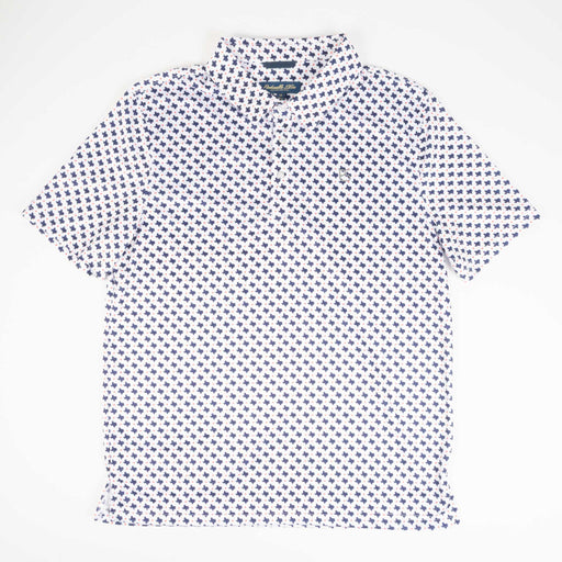 PanhandleStyle # TM51T07530 This versatile polo combines classic Western style with contemporary comfort. Featuring an all-over navy Aztec print, the shirt ...