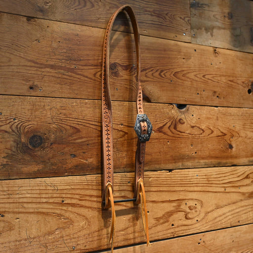Teskey'sThis handmade split ear tooled headstall by Bill Plummer is made with quality leather and is paired up with a silver Spur headstall buckle . Maker...