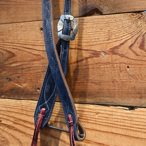 Teskey'sThis Navy Blue roughout 3/4" headstall with traditional gunslinger stitching and a silver buckle. Simple, dependable gear. Style: Split Ear Buck...