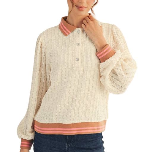 JodiflStyle # G15034 Elevate your wardrobe with this sophisticated ivory polo that combines timeless style with everyday comfort. The textured fabric add...