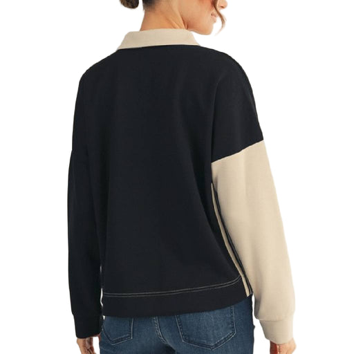 JodiflStyle # M50028 This refined pullover features a sophisticated colorblock design with contrasting stripe trim accents. The long sleeves and quarter-...