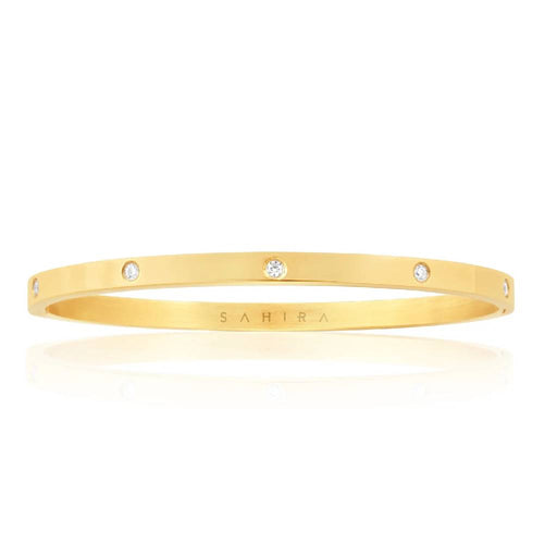 Sahira Jewelry DesignStyle # ELGBSJD Shine bright with the Elsie Eternity Bracelet! This 18k gold-plated beauty features a sturdy stainless steel base and tiny sparklin...
