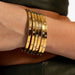Shine bright with the Elsie Eternity Bracelet! This 18k gold-plated beauty features a sturdy stainless steel base and tiny sparkling diamonds that add just the right amount of sparkle. Its hinge closure makes it easy to wear alone or stack up for a playful, layered look that’s all you.