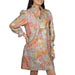 Featuring a pink floral design, this dress has long puff sleeves and a ruffle collar and cuffs to add a touch of elegance. The V-neckline and side pockets add functionality, while the lining ensures comfort all day long.