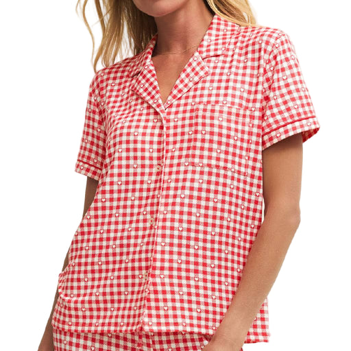 Z SupplyStyle # ZLT261394 The product features a red gingham print, collared neckline, short sleeves, and a button front closure. With a chest pocket, this...