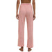 This product features a red and white stripe print, a high rise fit, and a full length. It is designed with an elastic waistband for comfort and a lightweight feel. Made with a blend of 62% polyester, 33% rayon, and 5% spandex, these pants are durable and versatile.