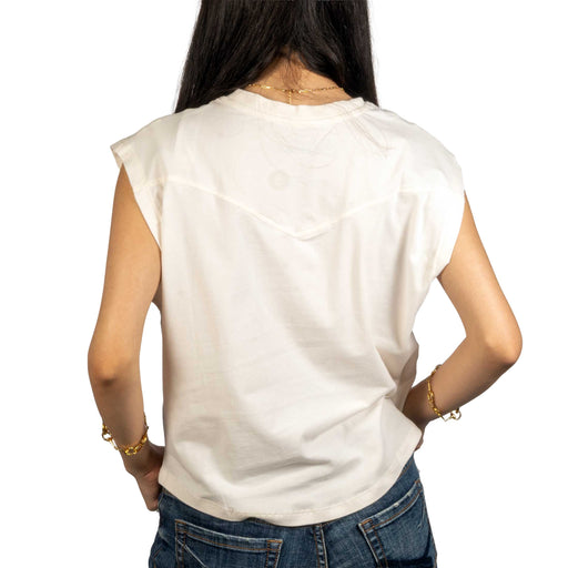 Ariat ClothingStyle # 10071110 Screen-printed with Western graphics, this cropped tee stands out with its unique back yoke. A curved hem and muscle-style cut add...