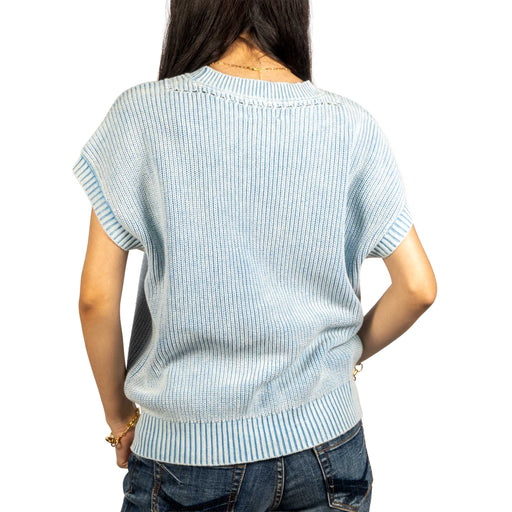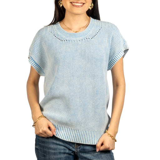Flag And AnthemStyle # SP26SW8185W The Flag & Anthem Women's Elwood Drop Needle Top is a versatile medium blue knit top crafted from 100% cotton for breathabl...