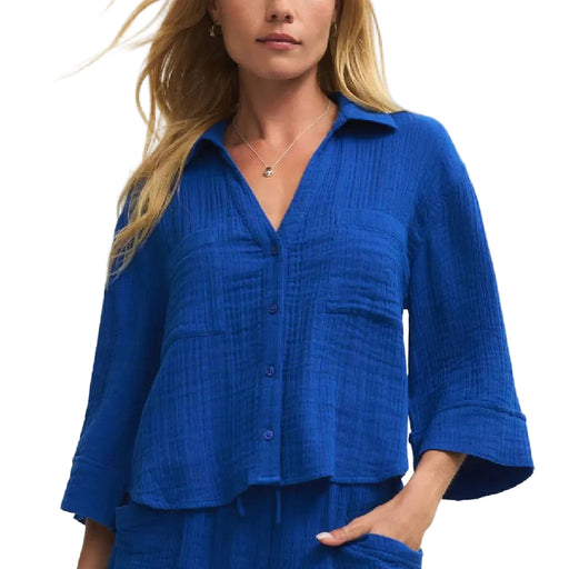Z SupplyStyle # ZT261375 Made from 100% cotton, this lightweight top moves with you. The textured feel, button front, and relaxed three-quarter-length sle...