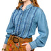 The Ivy Jane Tuxedo Denim Shirt combines premium denim with a sleek tuxedo-inspired design, offering a versatile piece that transitions effortlessly from casual to elevated looks. Perfect for adding a modern twist to your wardrobe.