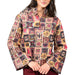 This pullover features a plum hue with long sleeves and a floral patchwork print, crafted from 100% cotton and equipped with a 1/4 zip closure for functional style.