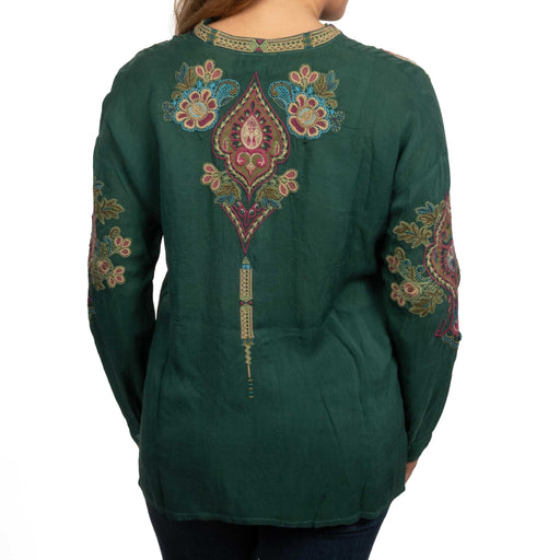 Johnny Was CollectionStyle # H20125-9 The Audrey Mandarin Collar Blouse is crafted from a lightweight, flowing fabric and is embellished with intricate embroidered deta...
