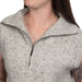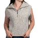 This sleeveless vest in grey features a 1/4 zip design and is crafted from rib knit fabric composed of 68% acrylic, 28% polyester, and 4% spandex for durability and stretch.
