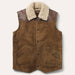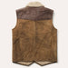 Crafted from high-quality suede leather with a vintage-inspired finish, the Distressed Suede Vest combines rugged western character with cold-weather comfort. It features contrast chocolate brown yokes, an oversized sherpa-lined collar, and a fully sherpa-lined interior for added warmth. With a full snap front and angled patch pockets with snap closures, it’s a functional outer layer with timeless western style.