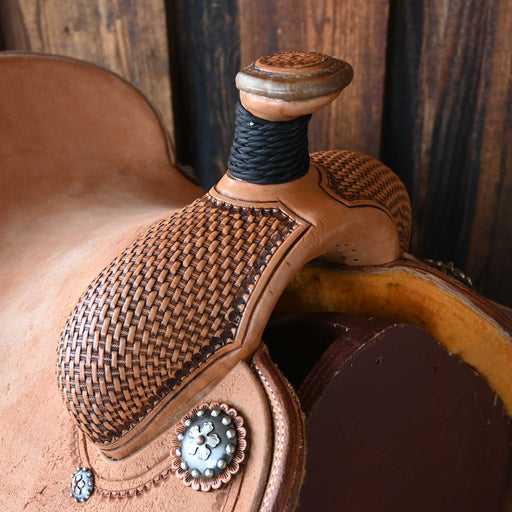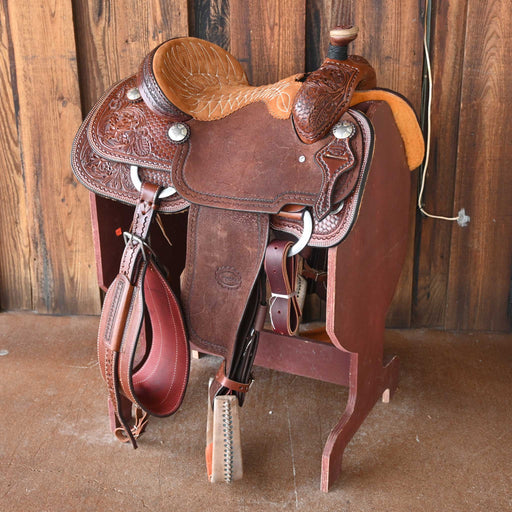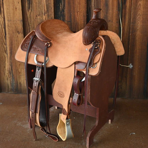 Teskey's SaddleryThis new 14.5" Teskey's Ranch Association saddle comes in a heavy oil 1/4 basket tooling with a hard seat. For more information call a saddle sales...