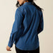This Ariat Women's True Blue Pearl Snap Shirt features a vintage indigo color and long sleeves with pearl snap closures. It includes classic Western yoke detailing and pocket styling, designed for daily wear with a comfortable, trusted fit. Crafted from 100% cotton chambray for breathability and durability.