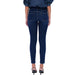 Classic five-pocket denim jeans in deep blue wash, featuring subtle frayed edges on front and back pockets.