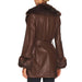 Crafted in rich cocoa tones, this refined faux leather coat features an effortlessly chic open-front silhouette enhanced by luxurious faux fur trim. The detachable waist tie allows you to customize your look, while practical side seam pockets add functionality. Fully lined for comfort and constructed from quality polyester, this versatile piece elevates any wardrobe with understated elegance.