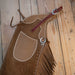 - Handmade stepthrough chaps made from a roughout leather accented with fringe and white buck stitch. These pair of chaps are also made with a pocket on both sides.